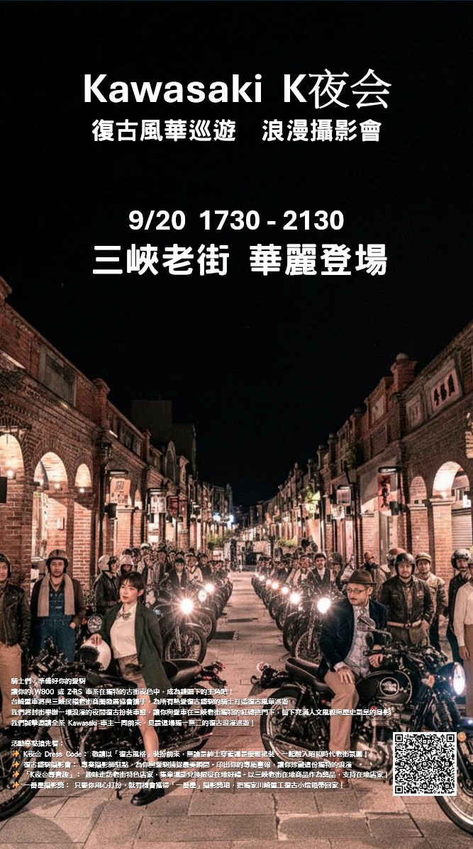 感謝超過200台來自於全省「Kawasaki的車友」、「Kawasaki經銷商」及「輕擋車俱樂部」,選擇三峽老街辦理「Kawasaki K夜会|復古風華巡遊,浪漫攝影會」