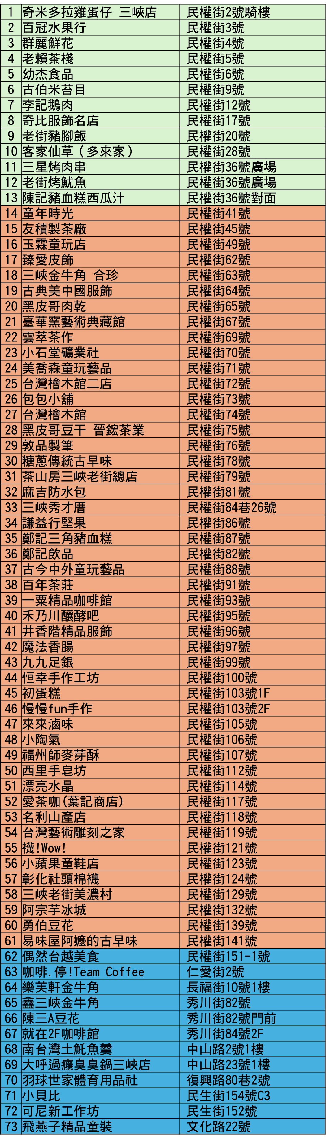 本次共有73家三峽老街內及周邊店家參與「2025三峽老街萬聖節」活動,擔任本次「活動特約店家」