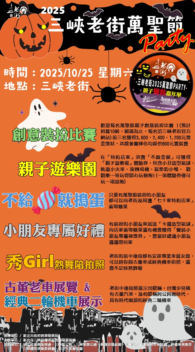 【活動搶先報】2025三峽老街萬聖節 歡迎全家來搗蛋 !