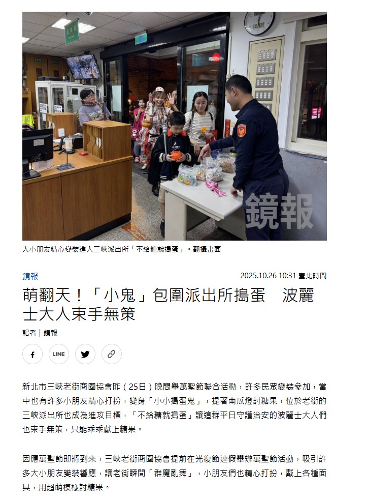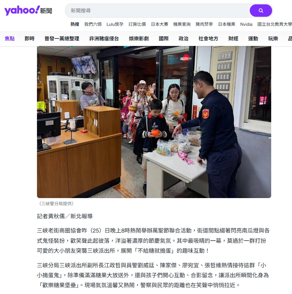 除了三峽老街內及周邊共有73家店家可以索取糖果,三峽派出所也成為大小朋友索取糖果的熱門景點....還上了新聞