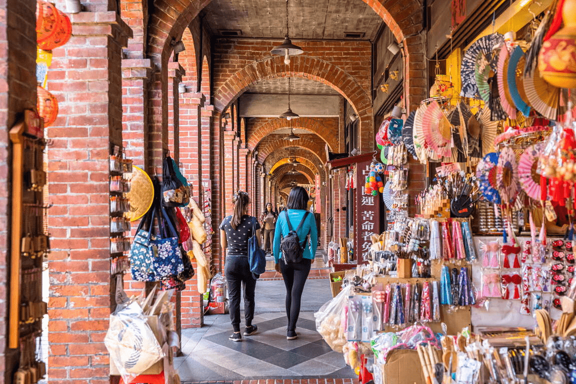 午後的光線從騎樓外側慢慢滑進來,影子落在地面上,腳步自然放慢。人聲、香氣、風,一起在街裡流動著,不需要特別做什麼,只是走著,就會被這裡的節奏帶著走。
